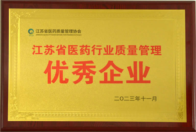 江蘇省醫藥行業質量管理優秀企業