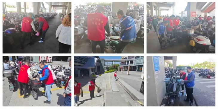參與活動的黨員們積極參與到活動中來:面對人行道上出現(xiàn)的垃圾,他們不怕臟累,一次次耐心撿起,將煙頭、紙團等小型垃圾收集至垃圾袋中,大型垃圾則直接丟棄至就近垃圾桶;面對停放雜亂的電動車,大家則互相配合,合作整理,并引導(dǎo)正在停車的車主有序停放,讓原本略顯雜亂的停車區(qū)很快變得井井有條起來。