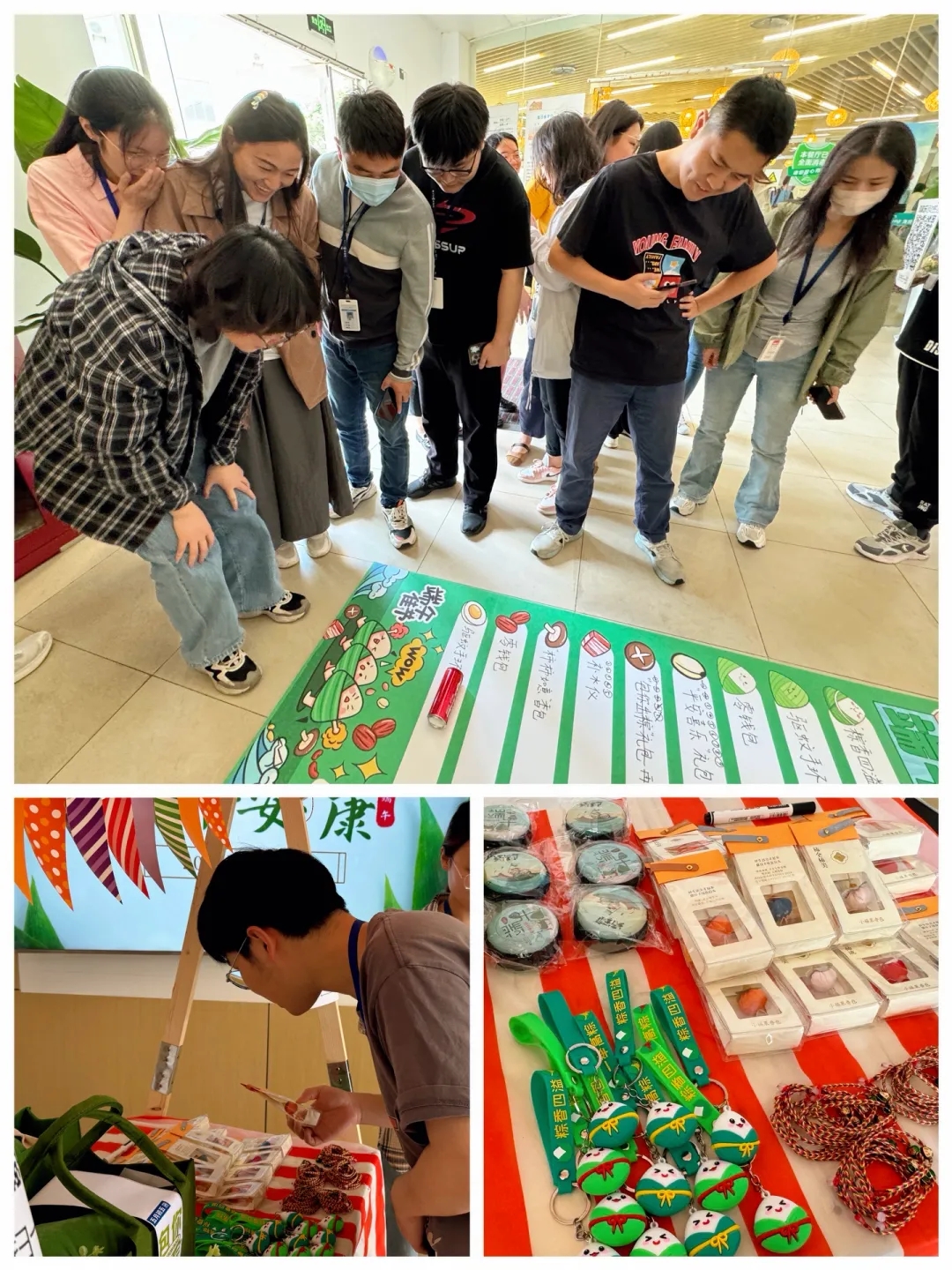 “端午滾滾樂”:食堂入口處,鋪上了一塊兩米長的地毯,裝點著可愛的小粽子,大小相同的空白窗格像階梯一樣列隊在地毯中央。員工們紛紛加入游戲,站在指定位置,將飲料罐滾動至相應窗格中,獲得驚喜獎品;未能獲獎的員工,也都領取到端午節五色繩。海陵工會為員工們準備了端午大禮包、補水儀、端午掛飾、零錢包等眾多獎品,活動現場熱鬧非凡,員工們積極參與游戲,共祝端午安康。