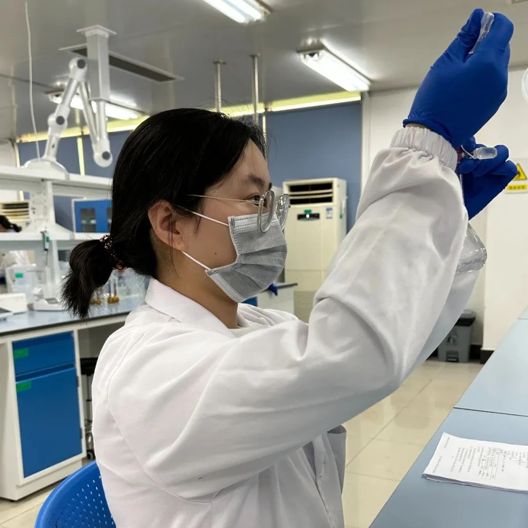 面對每一項任務,她都敢于挑戰、不畏困難。在成品組的檢測項目中,她發現對照品物質在室溫下易融化導致稱稱樣結果不準確的問題,經過幾次檢測該產品后,她積極思考如何有效控溫并提高稱量速度。經過一番思索,她嘗試使用過濾膜塑料盒加水制作簡易“冷凍倉”,在稱量過程中幫助產品有效保溫,保證對照品處于冷凍狀態。在經過多次使用后,發現該方式對稱量對照品速度有顯著提升,同時減少了對照品使用成本。