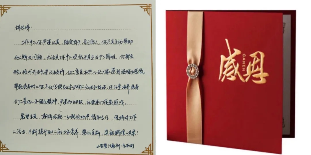海陵衷心對他們的付出表示感謝,并為其準備了感恩卡和禮物,直屬領導“驚喜出現”,將手寫感謝卡和禮物交給他們!
