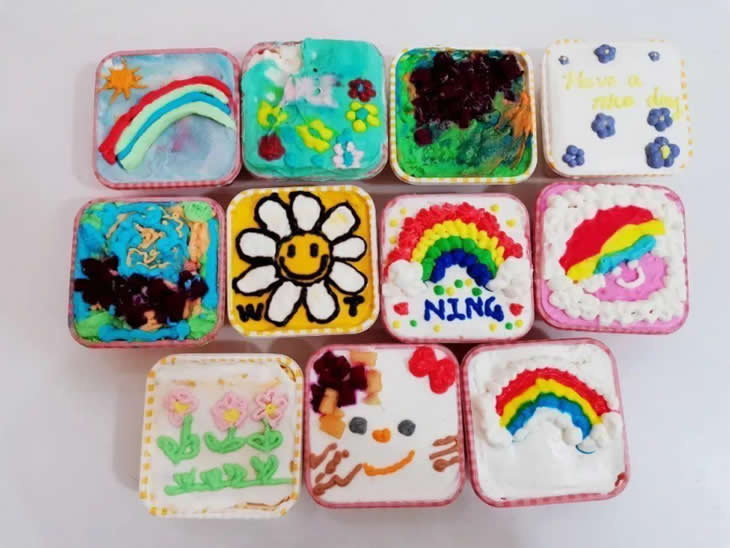 23日上午,大家共同體驗了盒子蛋糕和雪花酥的制作,打奶油、調(diào)顏色、畫蛋糕,過程中最興奮的當(dāng)屬孩子們了,他們用奶油畫上了各自喜歡的卡通圖案,和家長共同品嘗了自己的“甜蜜成果”。