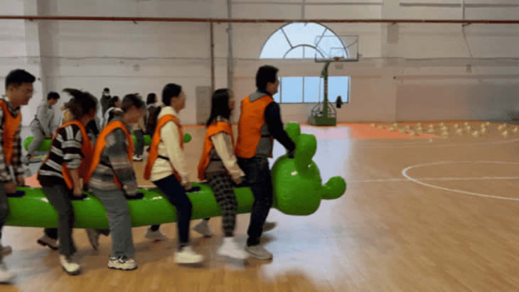 隨著響亮的口哨聲,活動正式開始!第一個項目是“毛毛蟲大比拼”,四支隊伍都領到了一只毛毛蟲作為團隊“坐騎”,看似簡單,實則不易。練習以后,大家都看出了項目的關鍵:考驗團隊協作力。“左右左”“一二一”各隊各自喊著口號步伐一致地奔赴終點!