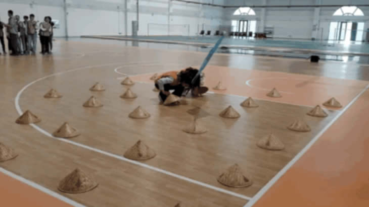 體力腦力比拼以后,來到了耐力賽,指壓板已經全部就位,其中設置了六個環節,轉象鼻—手持乒乓—跳繩—吹氣球—爆氣球—摸石過河,環環相扣,考驗團隊成員無縫銜接的默契度,請看大家一鏡到底的精彩配合吧。